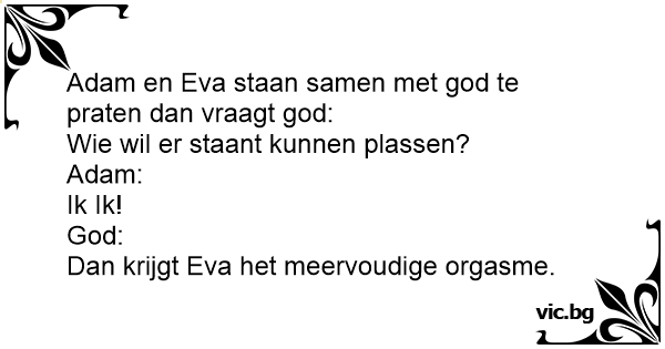 Pan Bóg pyta Adama i Ewę: - Kto chce sikać na stojąco? - Ja, ja, ja! - wyrywa się Adam. - W porządku. W takim razie dla Ewy zostaje wielokrotny orgazm.