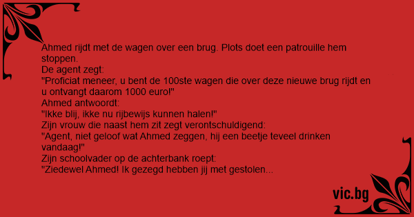 "Agent, niet geloof wat Ahmed zeggen, hij een beetje teveel drinken vandaag!"