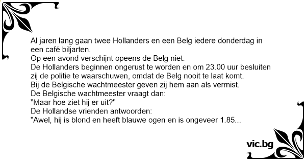 "Ik heb het nooit gezien, maar ik weet het zeker, want iedere donderdag als wij in het Belgische café komen zeggen de mensen om ons heen: