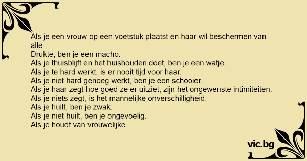 Als je een vrouw op een voetstuk plaatst en haar wil beschermen van alle