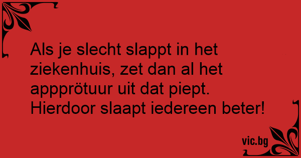 Als je slecht slappt in het ziekenhuis, zet dan al het appprötuur uit dat piept.
