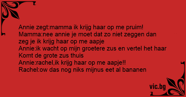 Mamma:nee annie je moet dat zo niet zeggen dan zeg je ik krijg haar op me aapje