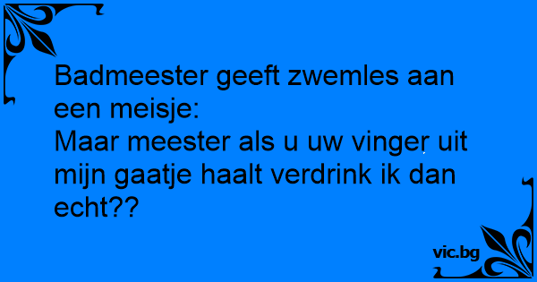 Maar meester als u uw vinger uit mijn gaatje haalt verdrink ik dan echt??