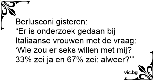 “Er is onderzoek gedaan bij Italiaanse vrouwen met de vraag: ‘Wie zou er sекs willen met mij? 33% zei ja en 67% zei: alweer?’”