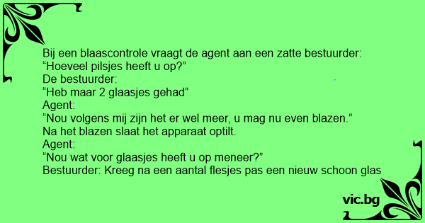 Bij een blaascontrole vraagt de agent aan een zatte bestuurder: