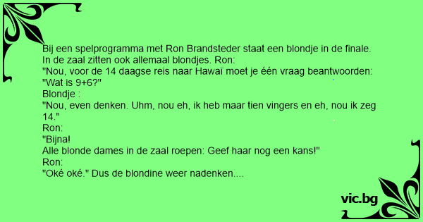 Bij een spelprogramma met Ron Brandsteder staat een blondje in de finale. In de zaal zitten ook allemaal blondjes. Ron: