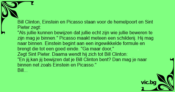 Bill Clinton, Einstein en Picasso staan voor de hemelpoort en Sint Pieter zegt: