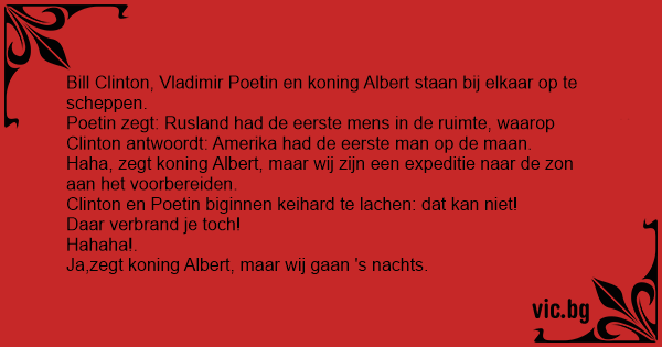 Poetin zegt: Rusland had de eerste mens in de ruimte, waarop Clinton antwoordt: Amerika had de eerste man op de maan.
