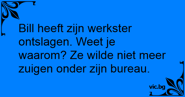 Bill heeft zijn werkster ontslagen. Weet je waarom? Ze wilde niet meer zuigen onder zijn bureau.