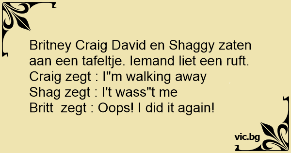 Britney Craig David en Shaggy zaten aan een tafeltje. Iemand liet een ruft.