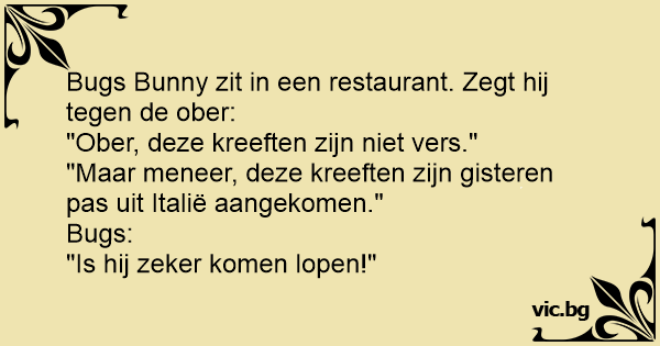 Bugs Bunny zit in een restaurant. Zegt hij tegen de ober:
