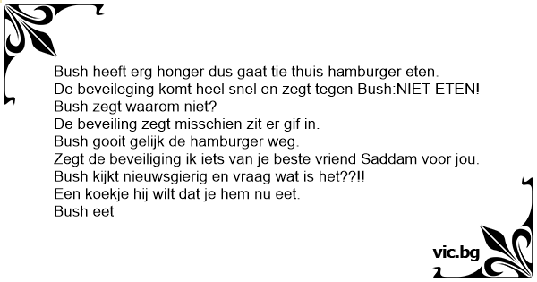 Zegt de beveiliging ik iets van je beste vriend Saddam voor jou. Bush kijkt nieuwsgierig en vraag wat is het??!!