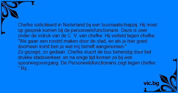 Chefke solliciteerd in Nederland bij een busmaatschappij. Hij moet op gesprek komen bij de personeelsfunctionaris. Deze is zeer onder de indruk van de C. V. van chefke. Hij verteld tegen chefke: