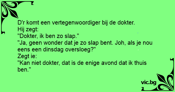 "Ja, geen wonder dat je zo slap веnт. Joh, als je nou eens een dinsdag oversloeg?"