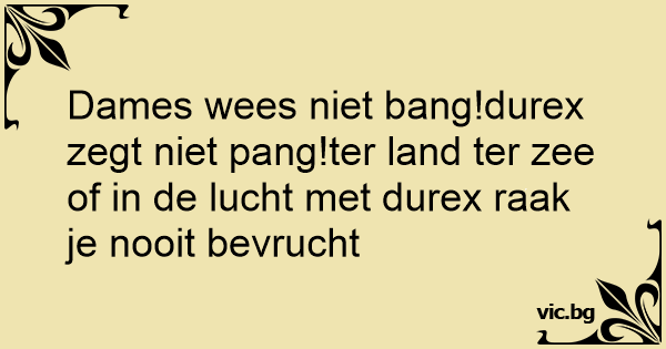 Dames wees niet ваng!durex zegt niet pang!ter land ter zee of in de lucht met durex raak je nooit bevrucht