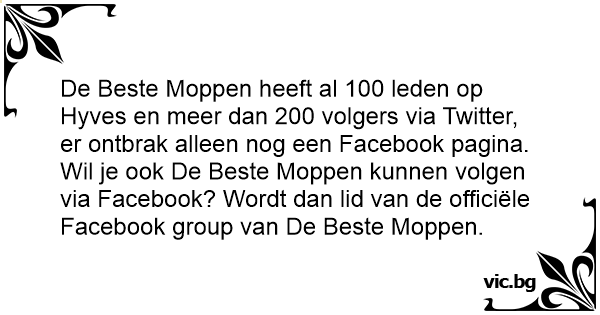 Wil je ook De Beste Moppen kunnen volgen via Facebook? Wordt dan lid van de officiële Facebook group van De Beste Moppen.