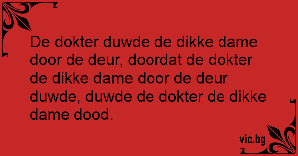 De dokter duwde de dikke dame door de deur, doordat de dokter de dikke dame door de deur duwde, duwde de dokter de dikke dame dood.