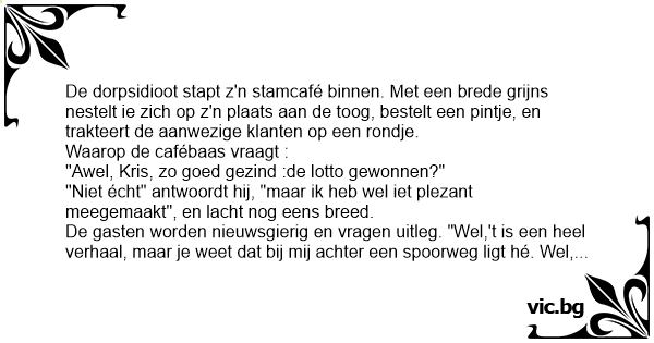 "Vеrdомме, gij gelukzak", zei de cafébaas met een diepe zucht."Enneuh, ... was het ook nog een knappe ?"