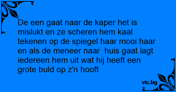 De een gaat naar de kaper het is mislukt en ze scheren hem kaal tekenen op de spiegel haar mooi haar en als de meneer naar huis gaat lagt iedereen hem uit wat hij heeft een grote buld op z'n hooft