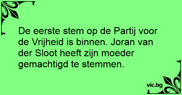 De eerste stem op de Partij voor de Vrijheid is binnen. Joran van der Sloot heeft zijn moeder gemachtigd te stemmen.
