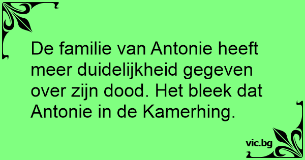 De familie van Antonie heeft meer duidelijkheid gegeven over zijn dood. Het bleek dat Antonie in de Kamerhing.