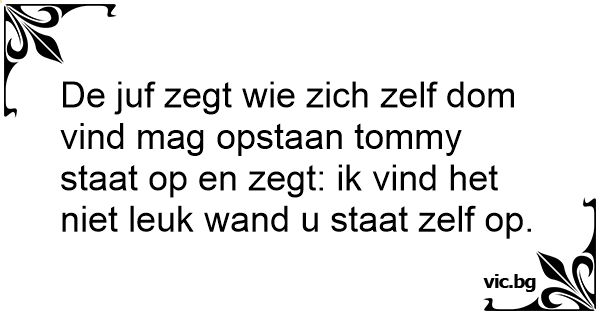 De juf zegt wie zich zelf dom vind mag opstaan tommy staat op en zegt: ik vind het niet leuk wand u staat zelf op.