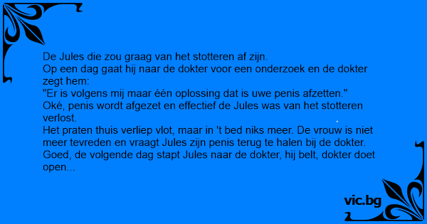 Goed, de volgende dag stapt Jules naar de dokter, hij belt, dokter doet open en ineens zegt den dokter: