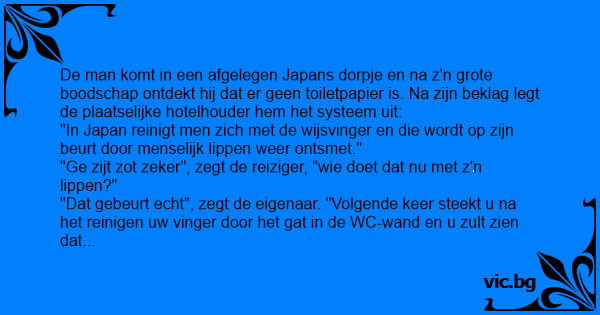 "In Japan reinigt men zich met de wijsvinger en die wordt op zijn beurt door menselijk lippen weer ontsmet."