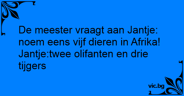 Lehrerin: „Fritzchen, nenne mir bitte fünf Tiere aus Afrika?“ Fritzchen: „Zwei Löwen und drei Elefanten.“