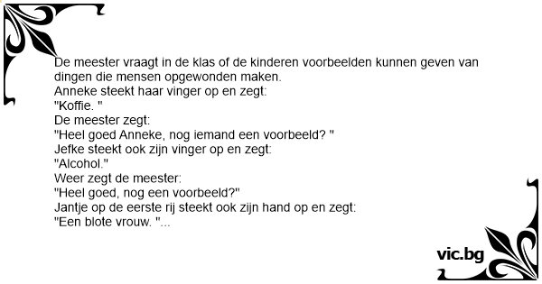 De meester vraagt in de...