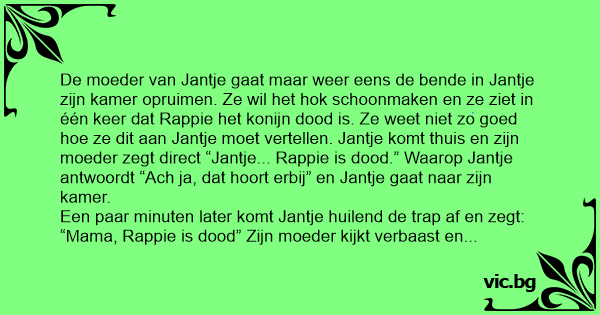“Mama, Rappie is dood” Zijn moeder kijkt verbaast en zegt: