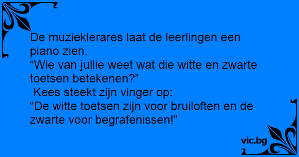 “Wie van jullie weet wat die witte en zwarte toetsen betekenen?”