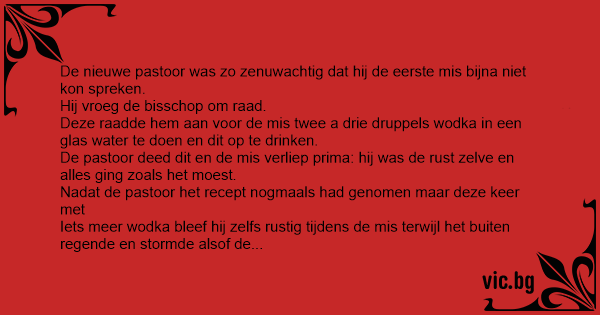 Deze raadde hem aan voor de mis twee a drie druppels wodka in een glas water te doen en dit op te drinken.