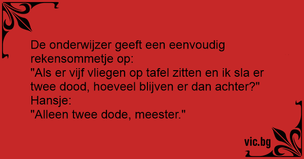 "Als er vijf vliegen op tafel zitten en ik sla er twee dood, hoeveel blijven er dan achter?"