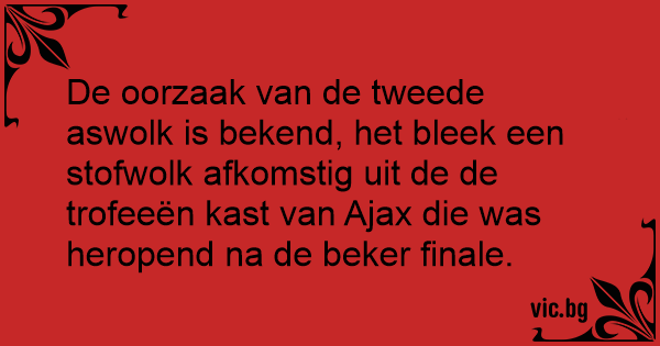 De oorzaak van de tweede aswolk is bekend, het bleek een stofwolk afkomstig uit de de trofeeën kast van Ajax die was heropend na de beker finale.