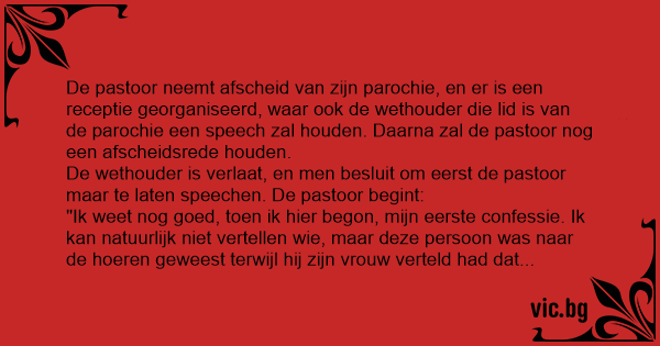 "Ik weet nog goed, toen ik hier begon, mijn eerste confessie. Ik kan natuurlijk niet vertellen wie, maar deze persoon was naar de hoeren geweest terwijl hij zijn vrouw verteld had dat hij was gaan vissen.... "