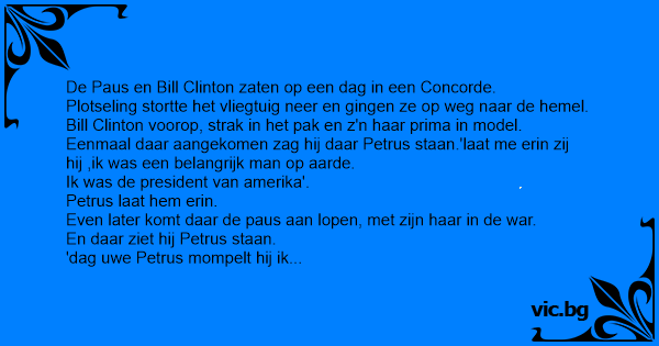 De Paus en Bill Clinton zaten op een dag in een Concorde.