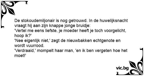 De stokoudemiljonair is nog getrouwd. In de huwelijksnacht vraagt hij aan zijn knappe jonge bruidje: