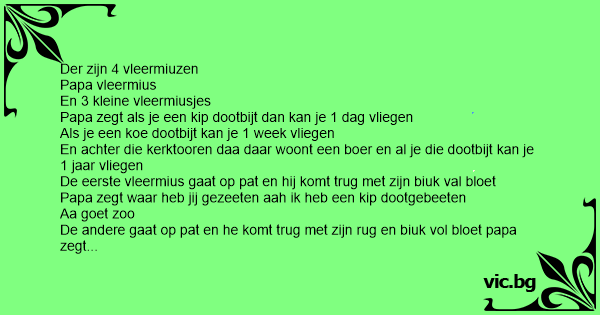 Papa zegt waar heb jij gezeeten aah ik heb een kip dootgebeeten