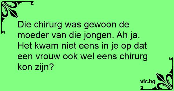 Die chirurg was gewoon de moeder van die jongen. Ah ja. Het kwam niet eens in je op dat een vrouw ook wel eens chirurg kon zijn?