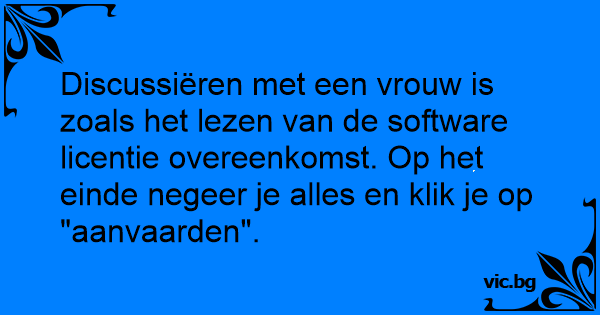 Discussiëren met een vrouw is zoals het lezen van de software licentie overeenkomst. Op het einde negeer je alles en klik je op "aanvaarden".