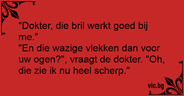 "Dokter, die bril werkt goed bij me."