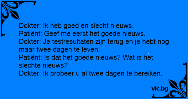 Patiënt: Is dat het goede nieuws? Wat is het slechte nieuws?