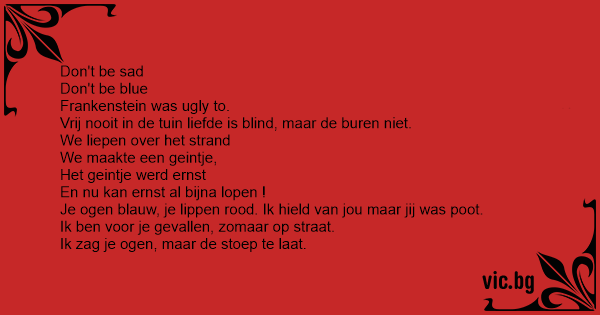 Je ogen blauw, je lippen rood. Ik hield van jou maar jij was роот.
