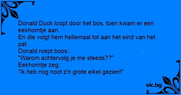 Donald Duck loopt door het bos, toen kwam er een eekhorntje aan.