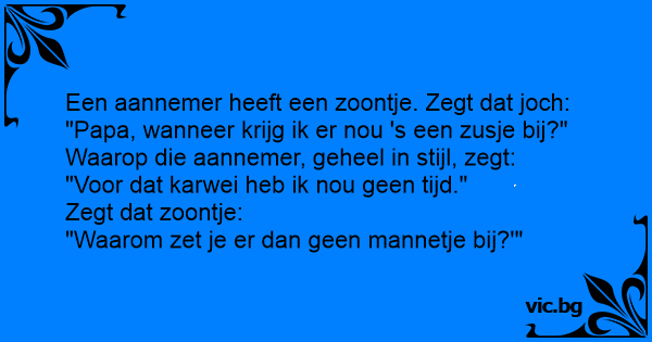 Een aannemer heeft een zoontje. Zegt dat joch: