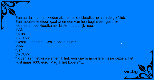 Több férfi ül a klub öltözőjében, edzés után. Hirtelen egy mobiltelefon csengője szólal meg az egyik padon. Egy férfi felveszi, majd beköszön: - Halló! - Kevesem, én vagyok, - szólal meg egy női...