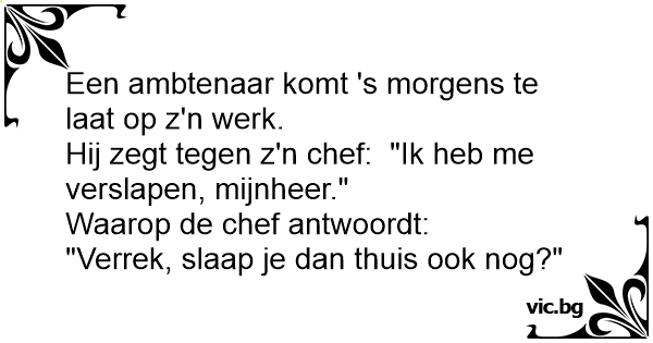 Hij zegt tegen z'n chef: "Ik heb me verslapen, mijnheer."