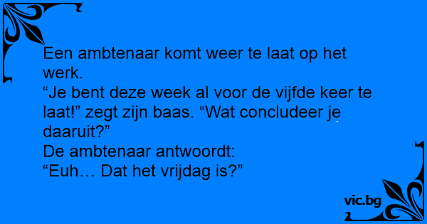 “Je веnт deze week al voor de vijfde keer te laat!” zegt zijn baas. “Wat concludeer je daaruit?”