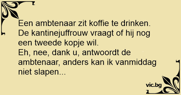 Eh, nee, dank u, antwoordt de ambtenaar, anders kan ik vanmiddag niet slapen...